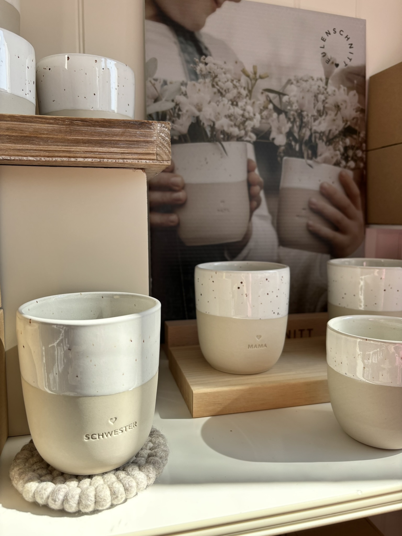 Bei uns findest du unter anderem Kerzen & Halter, Keramik, Vasen, Textilien, Dekoration und Livestyl-Produkte wie Schmuck, Taschen und Socken.